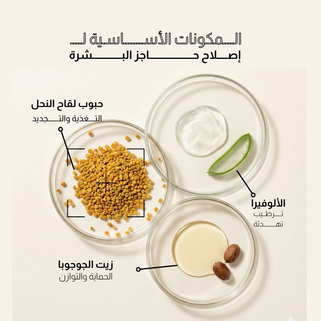 حبوب لقاح النحل غنية بالعناصر الغذائية التي تساعد على تقوية البشرة، وتقليل الجفاف، وتخفيف الخطوط الدقيقة الناتجة عن الجفاف. تبدو البشرة أكثر نعومةً وهدوءًا وإشراقًا، دون أي بقايا دهنية أو تهيج.
